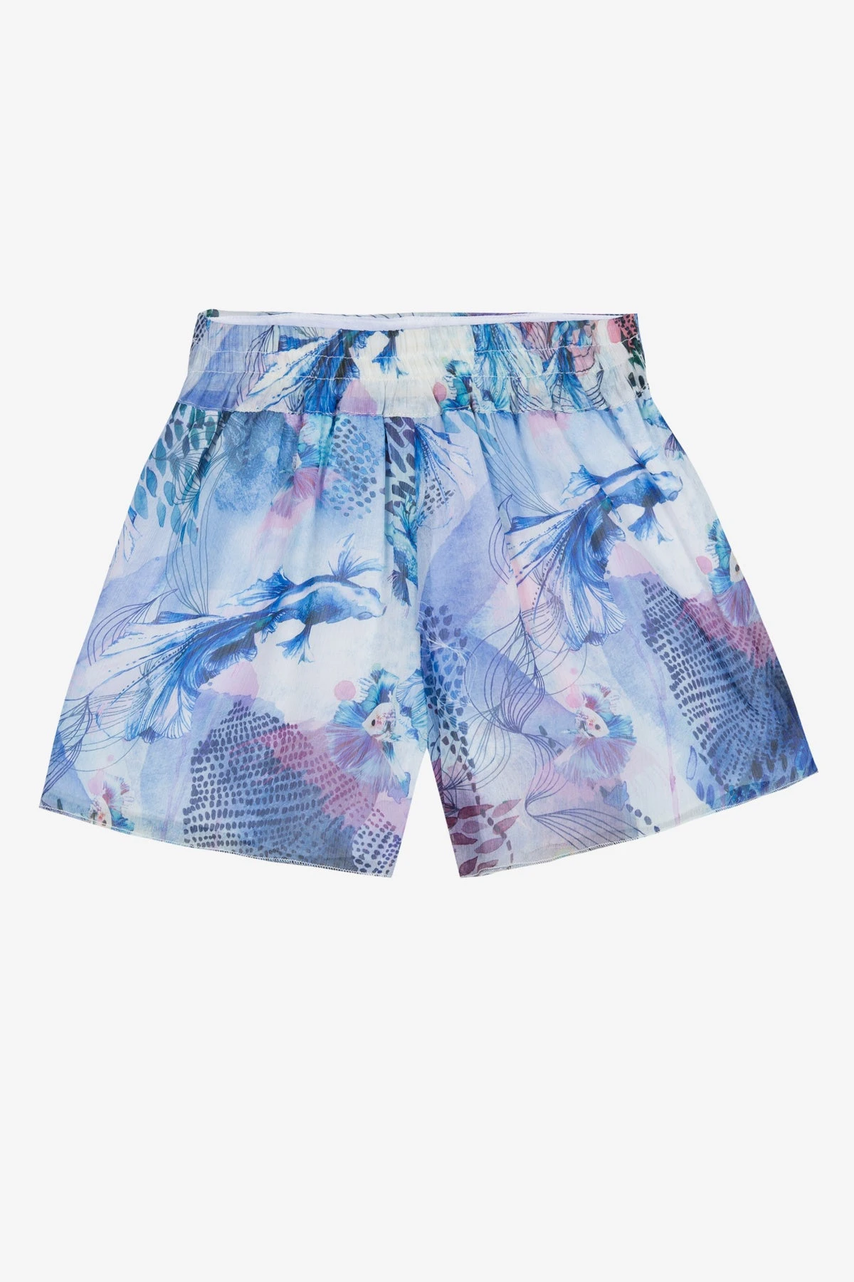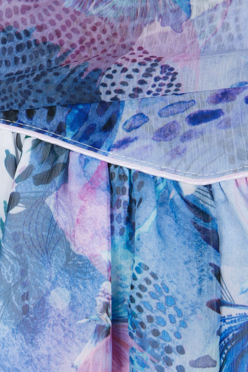 in a blue and purple theme. 100% polyester, lined, machine wash.