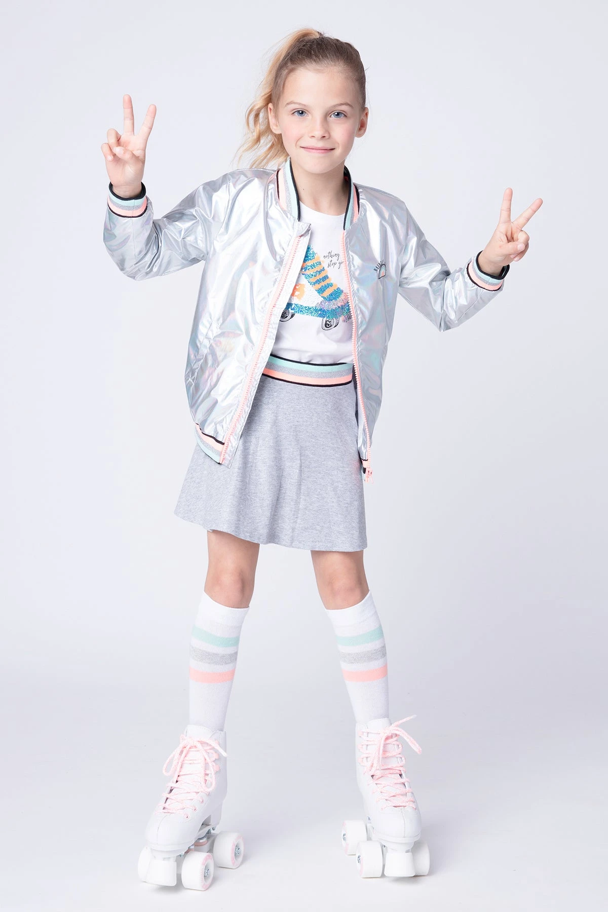 with a metallic sheen to match the striped waistband. 65% polyester, 35% cotton, machine wash.