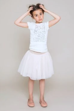 with a solid papaya color top paired with a contemporary print bottom. 100% cotton, machine wash.