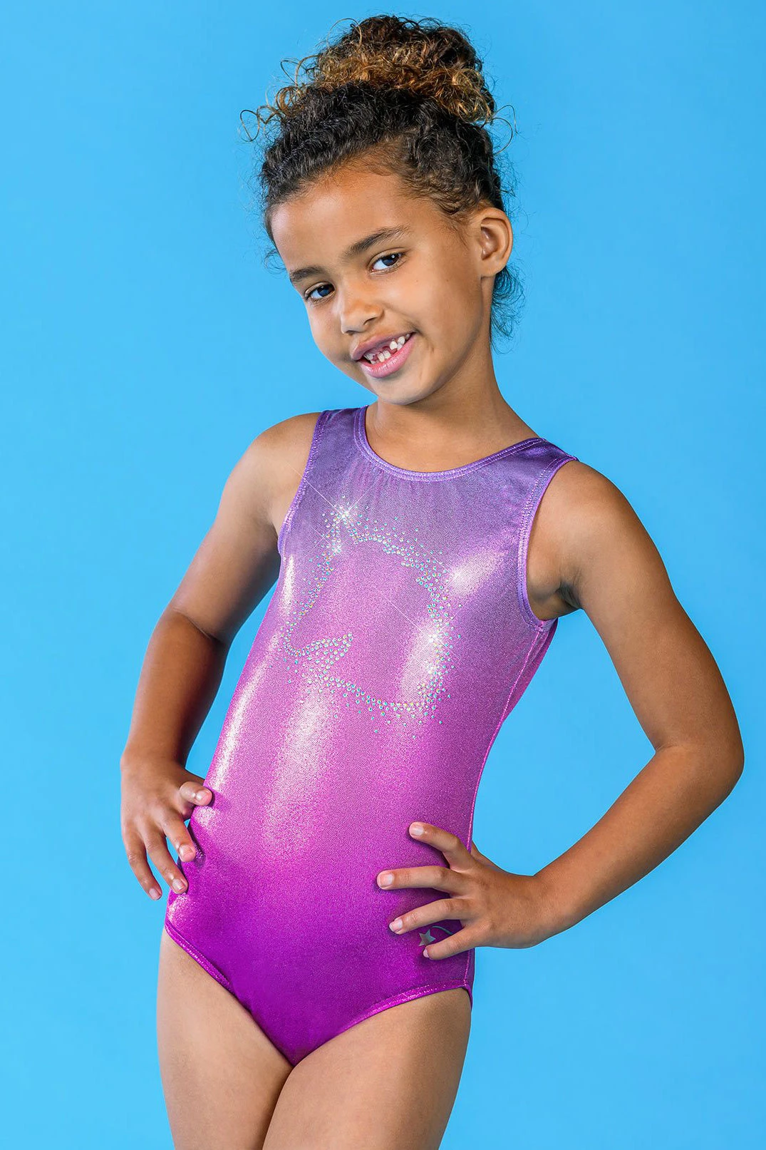 embellishment in iridescent rainbow rhinestones over a shimmering ombre body that fades from dusty purple to deep magenta. The Perfect Tank styling is designed for comfort and superior mobility for your little