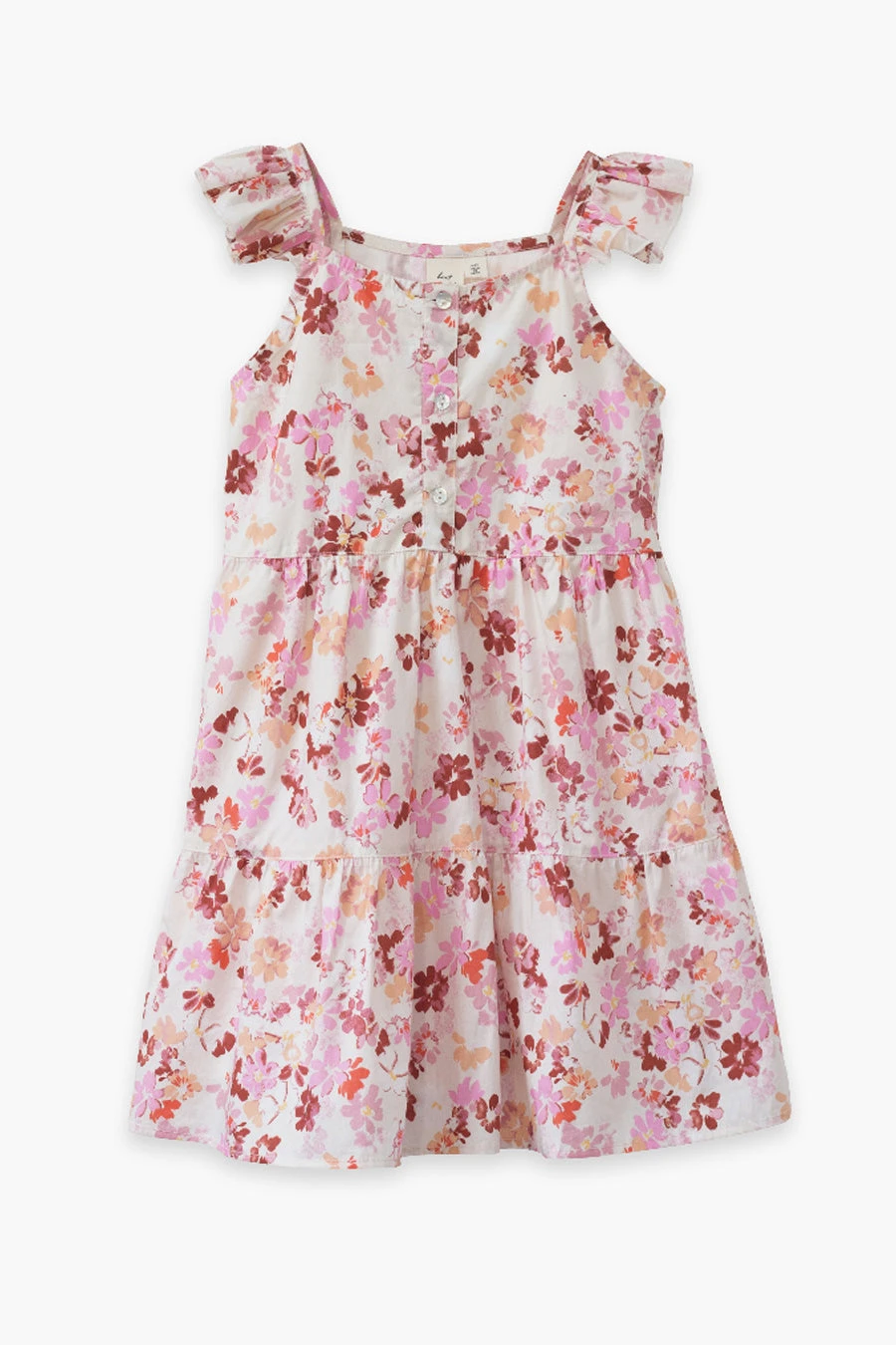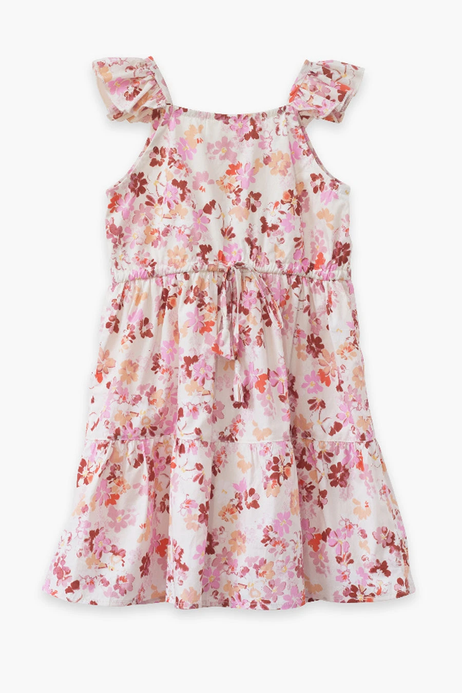 Girls Dress in Summer Bloom is an adorable floral print dress with ruffles and a tie in the back for the perfect fit. 100% cotton, lined with cotton voile. Machine wash cold.