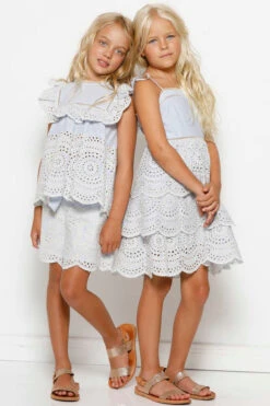 shorts romper with a gathered waist and shoulder ties. 100% cotton, machine wash.