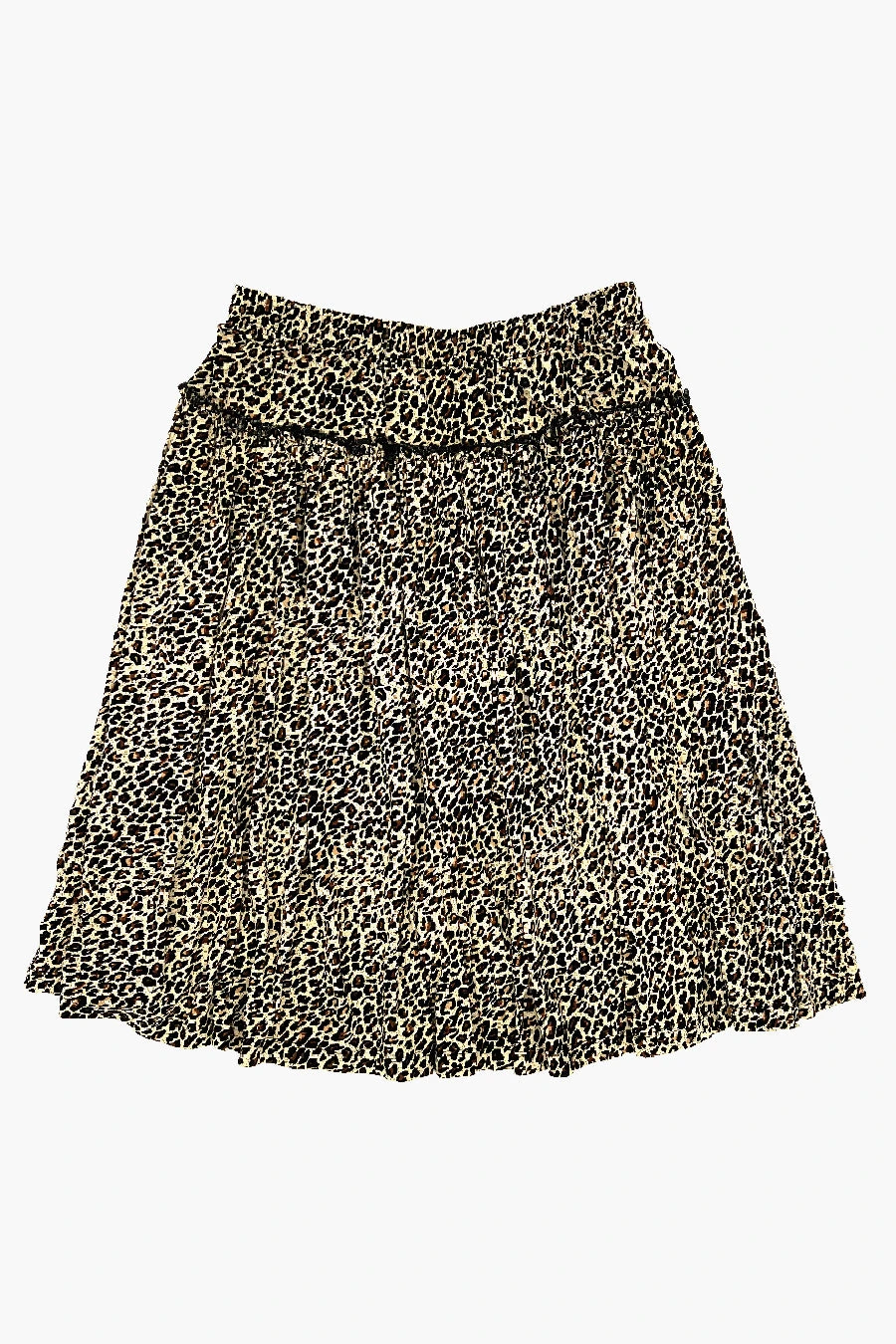 is made in a brown leopard print with an elastic waist and a waistband perfect for everyday