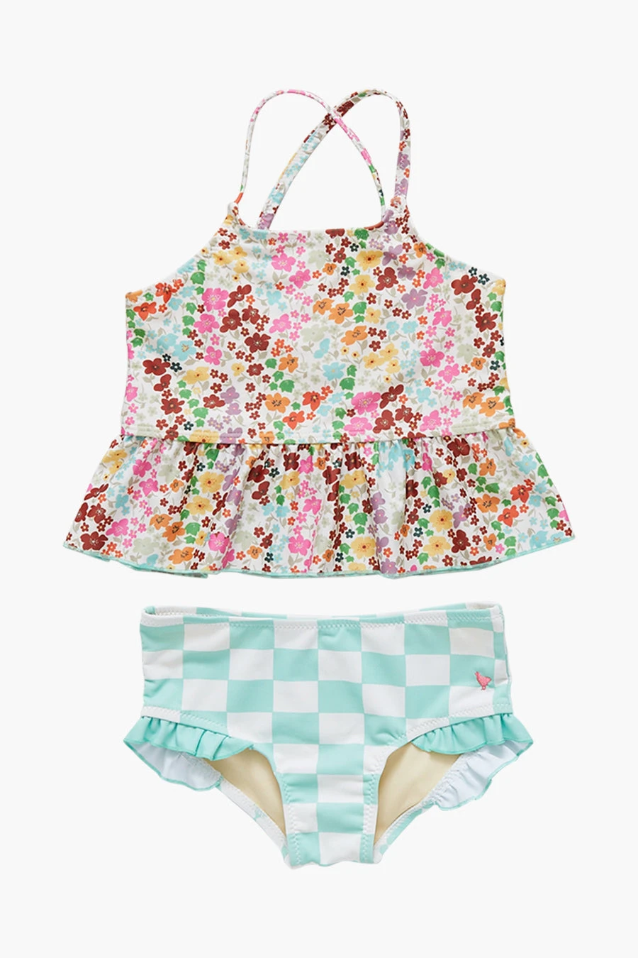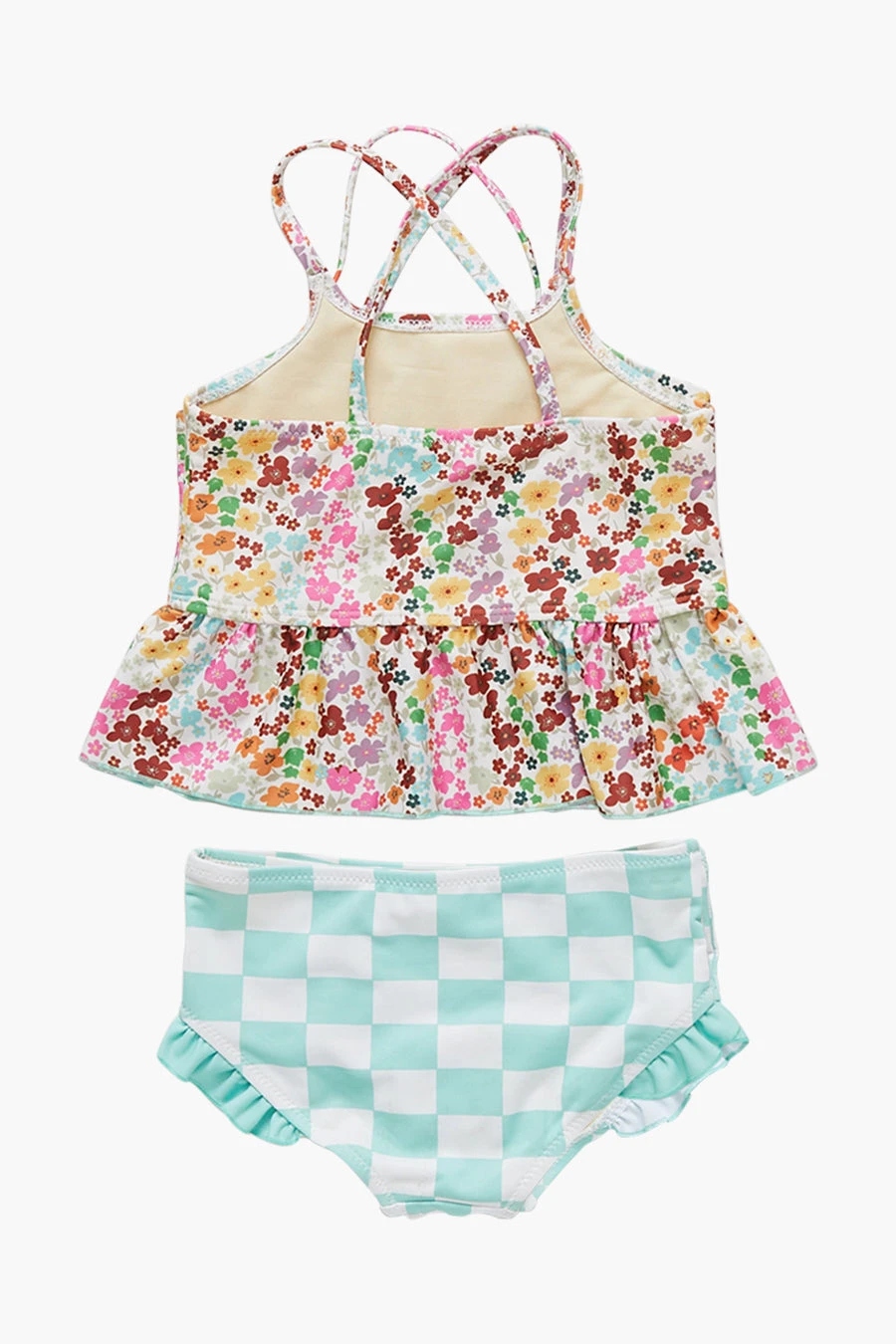 days in the sun. Features criss-cross straps, a peplum hem and a matching high waisted bottom. 82% polyester, 18% spandex, rinse and hang dry.