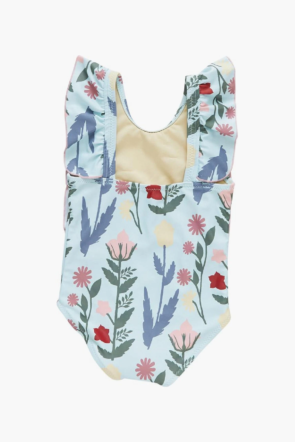 featuring ruffles along the shoulders and an all over floral print. This suit is perfect for days hanging out by the pool or playing in the sand at the