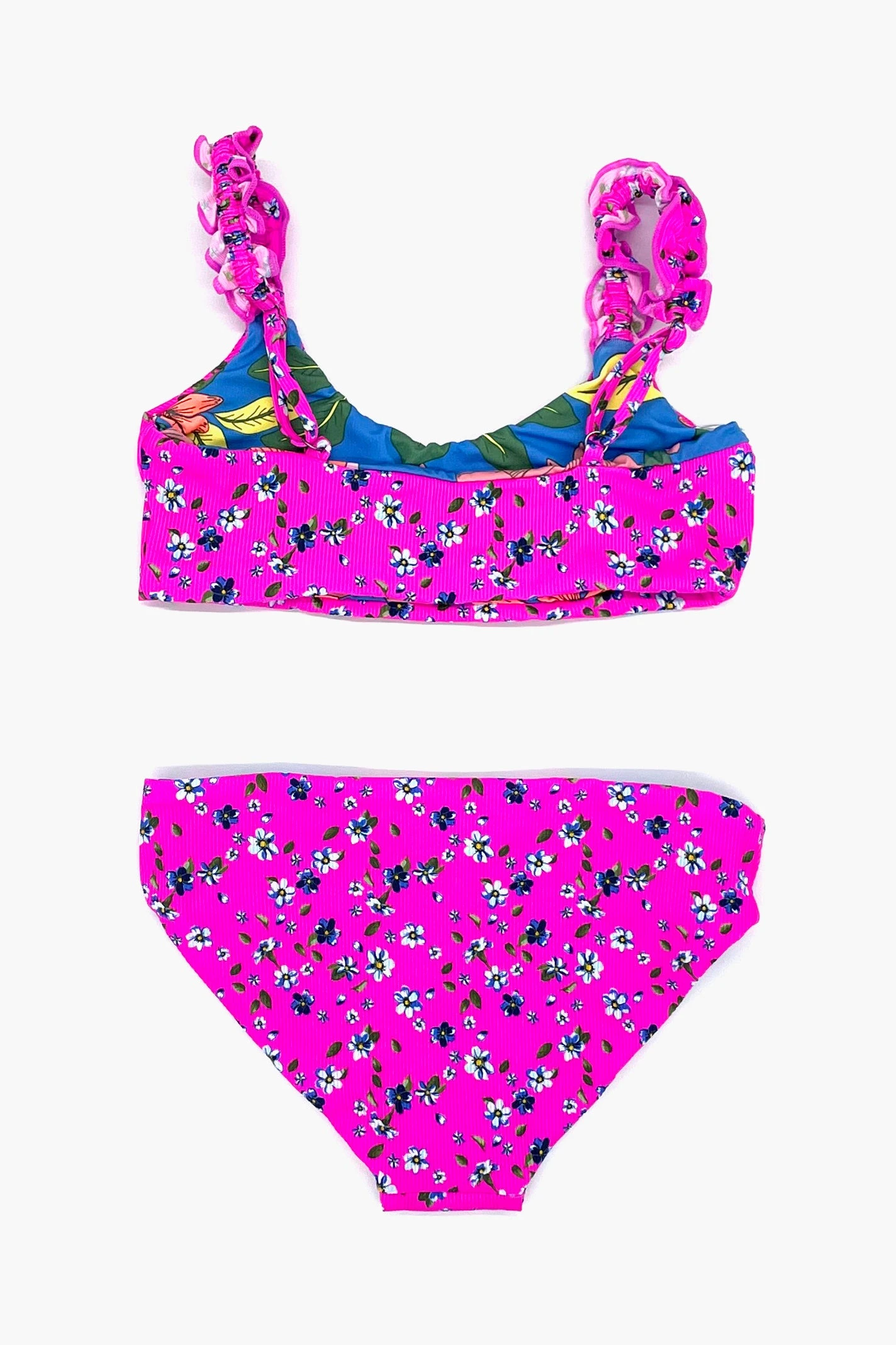 for mixing and matching patterns, ruffles at the shoulders and a matching bottom. Made of 88% polyamide and 12% spandex, rinse and hang to dry.