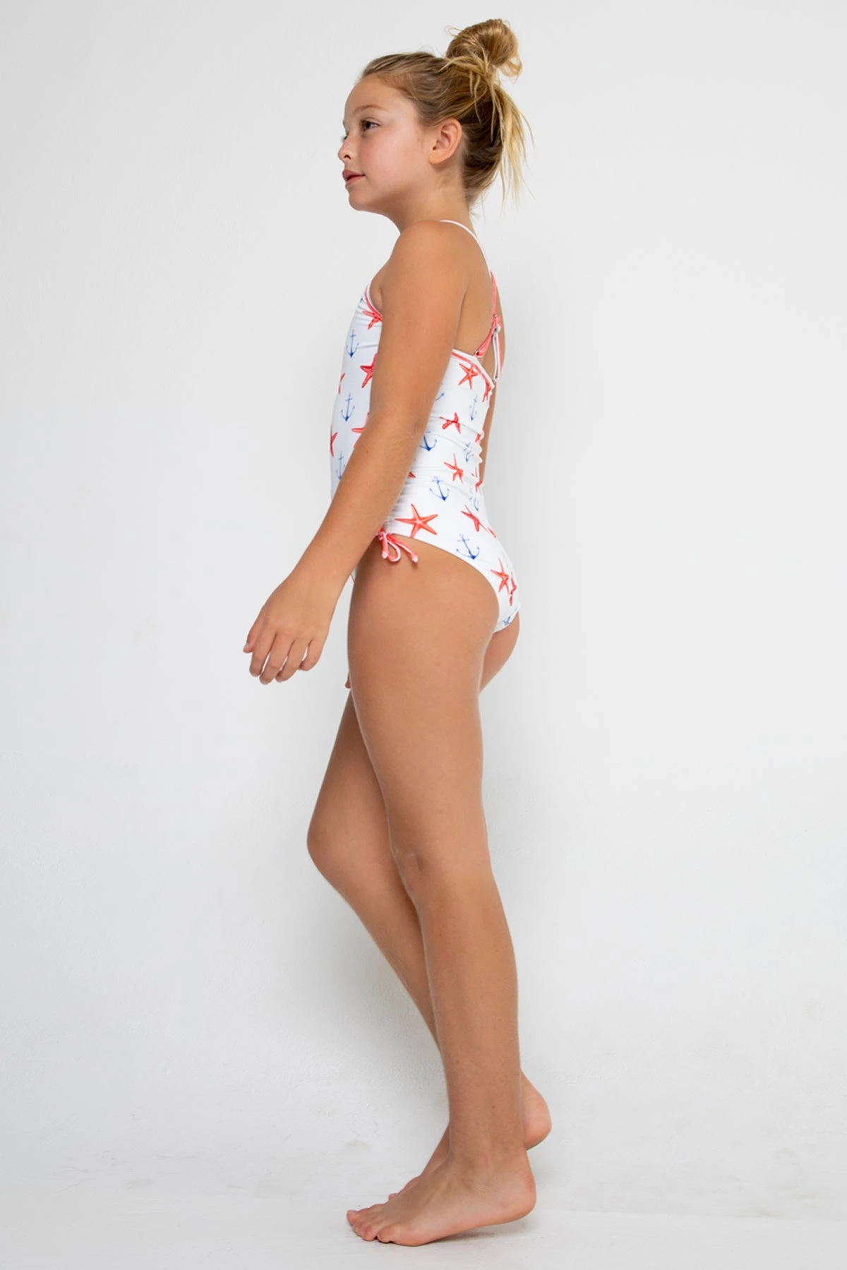 is the ultimate summer theme. Features thin straps that cross in the back and tie detailing at the hip. 90% poliamide, 10% elastane. Hand rinse and drip dry.