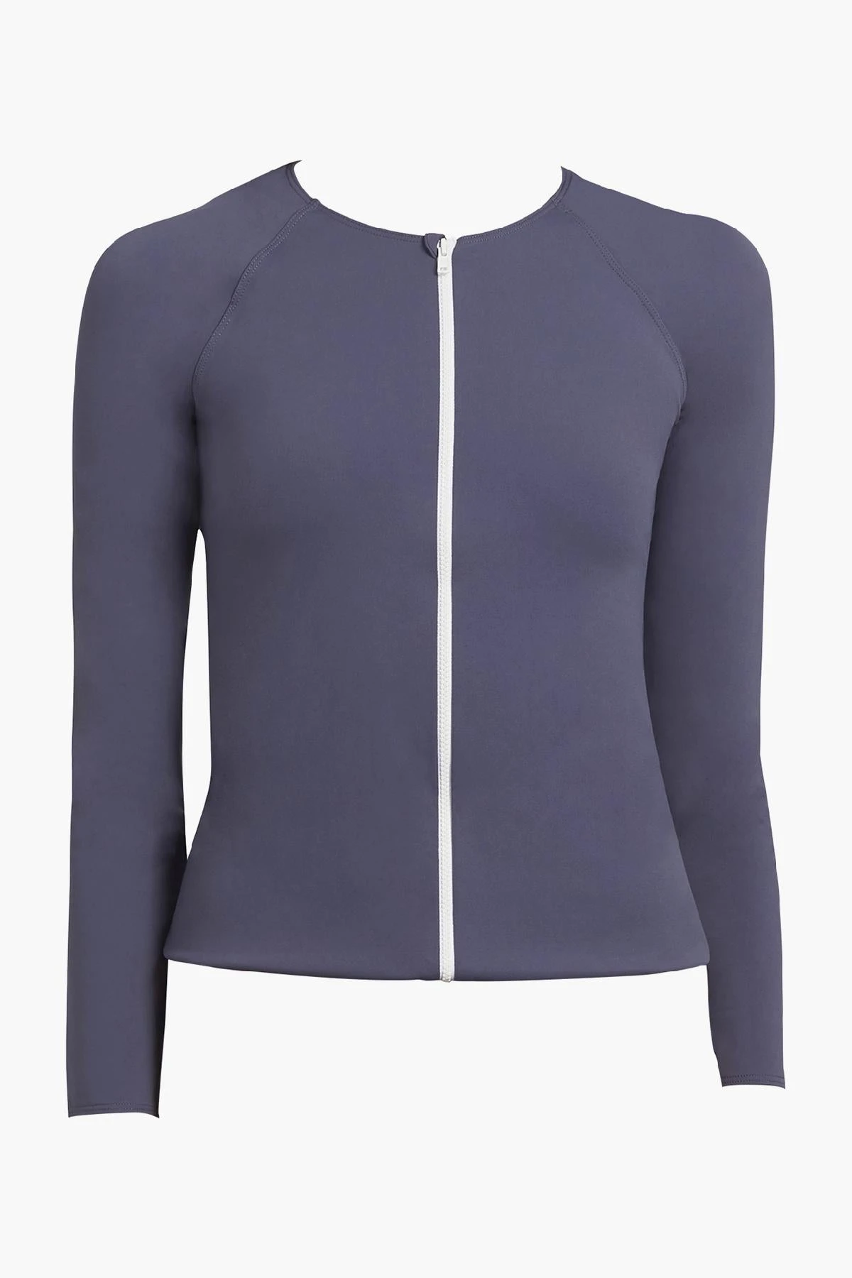 over a swim suit or as a stand alone top. Quick drying and chlorine resistant, this rashguard also features a protective inner panel along the zipper. Comes with a fun and functional zipper beach pouch. Made in Italy using patented technology,
