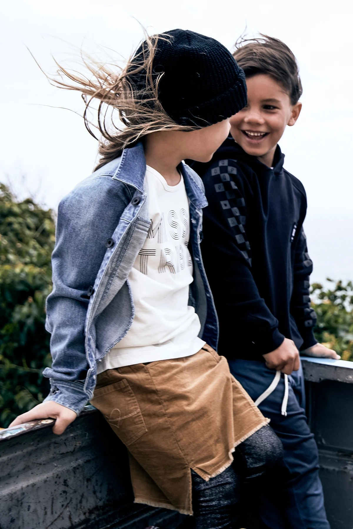 comes in a camel color corduroy that has been treated with a heavy enzyme wash resulting in a slightly vintage