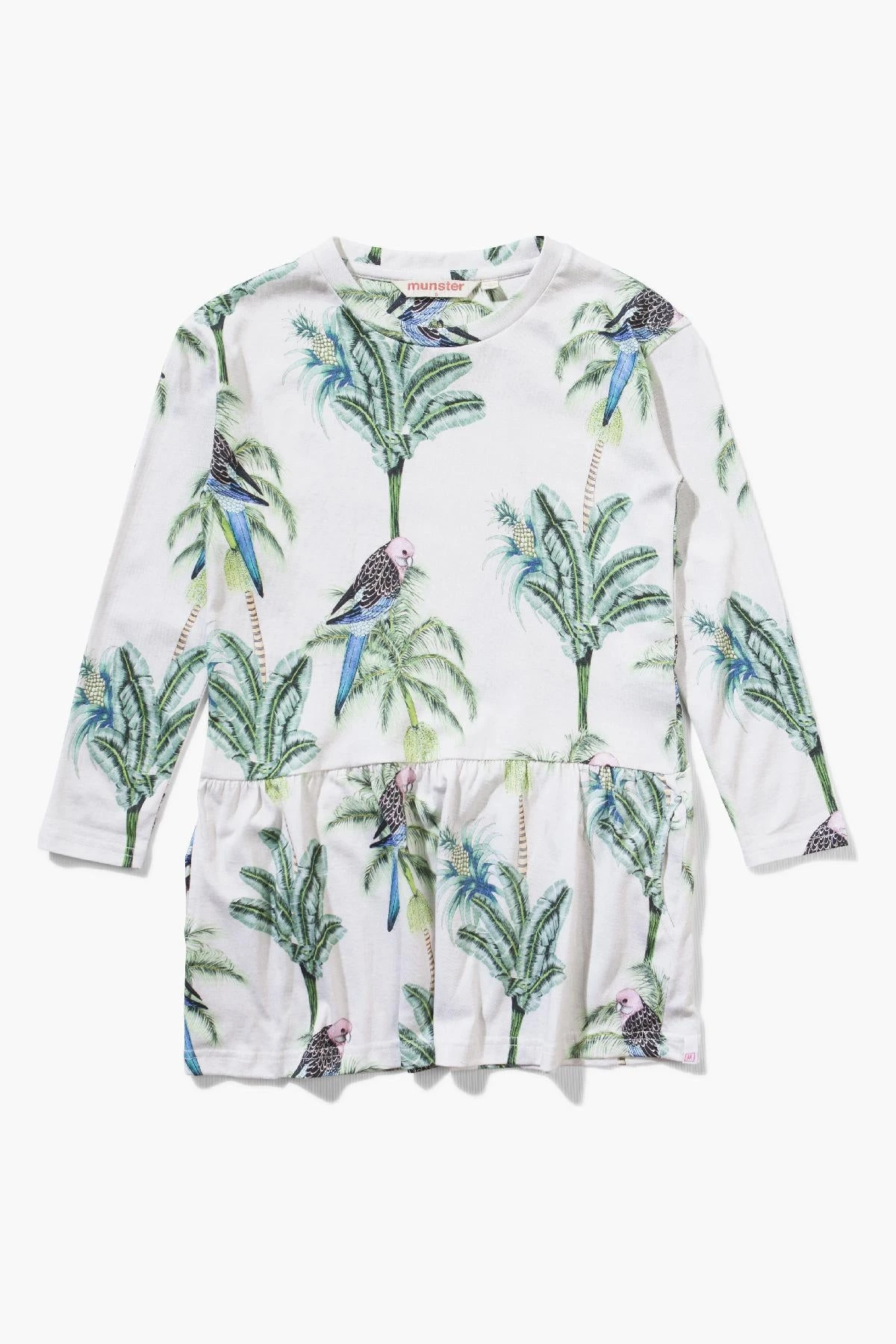 is made in a comfortable cotton jersey blend that features a digital tree and bird print. Pair this