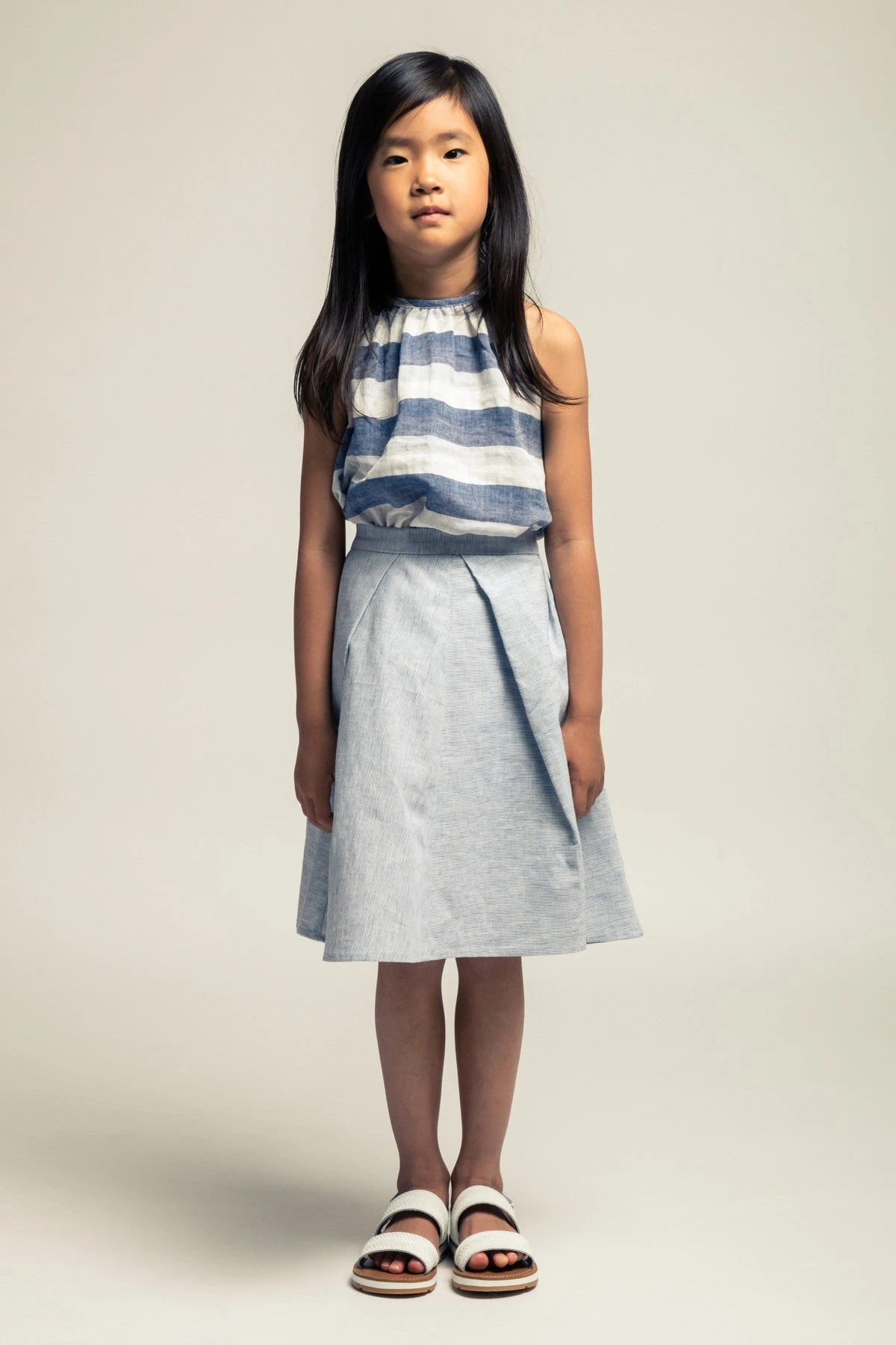 . Features an elastic waist and slight pleating for a sophisticated look.