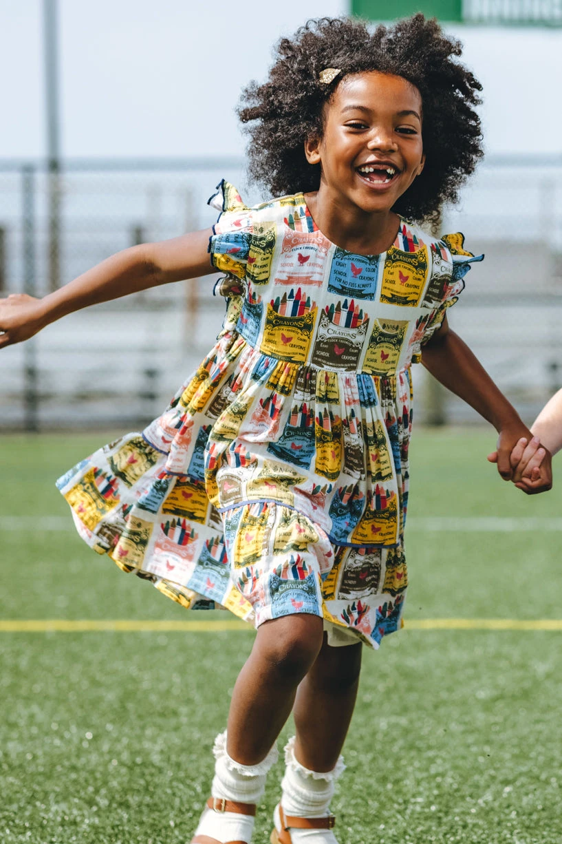 in an all over crayon print, a great choice for the little lady, especially for back to