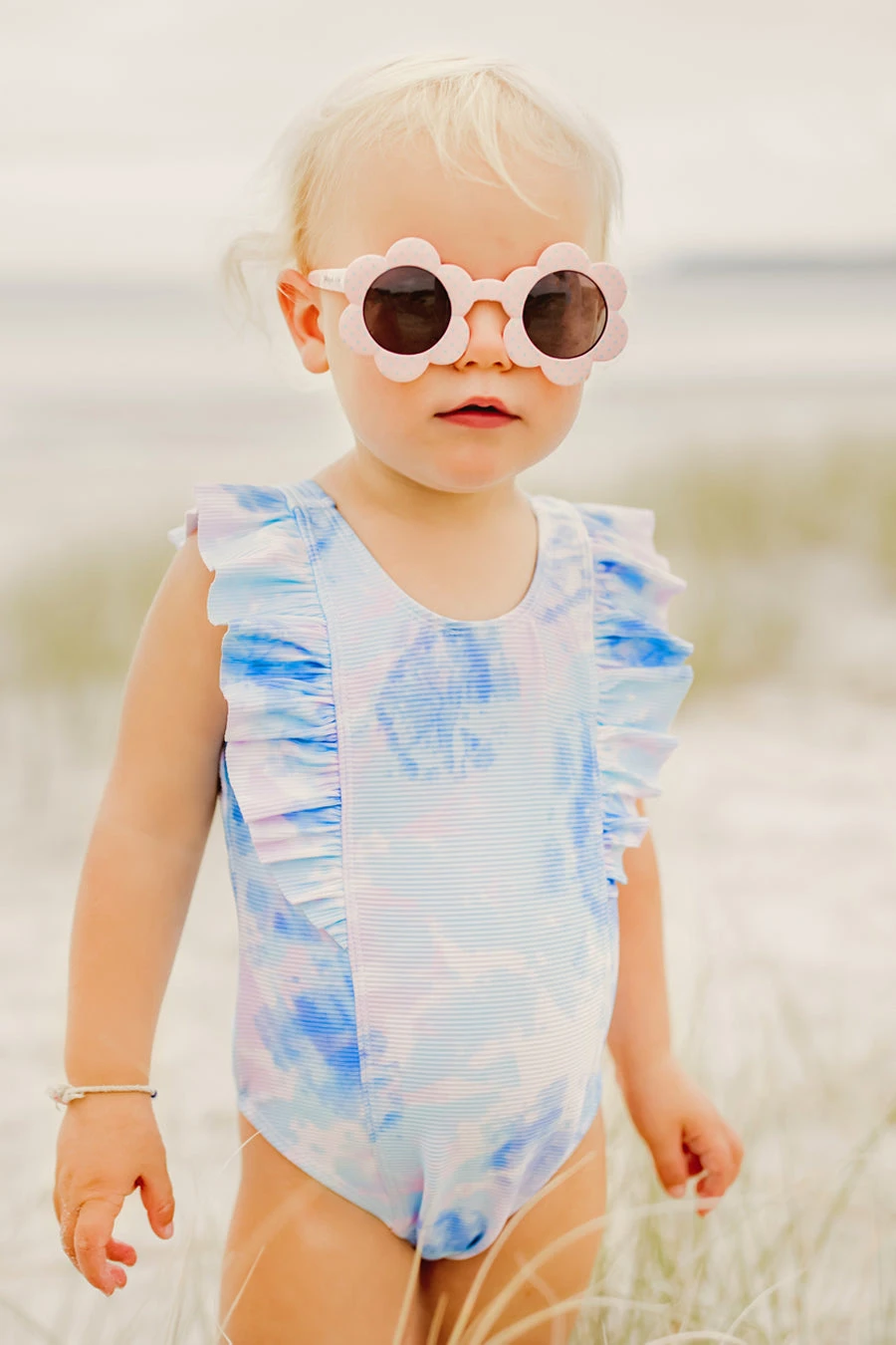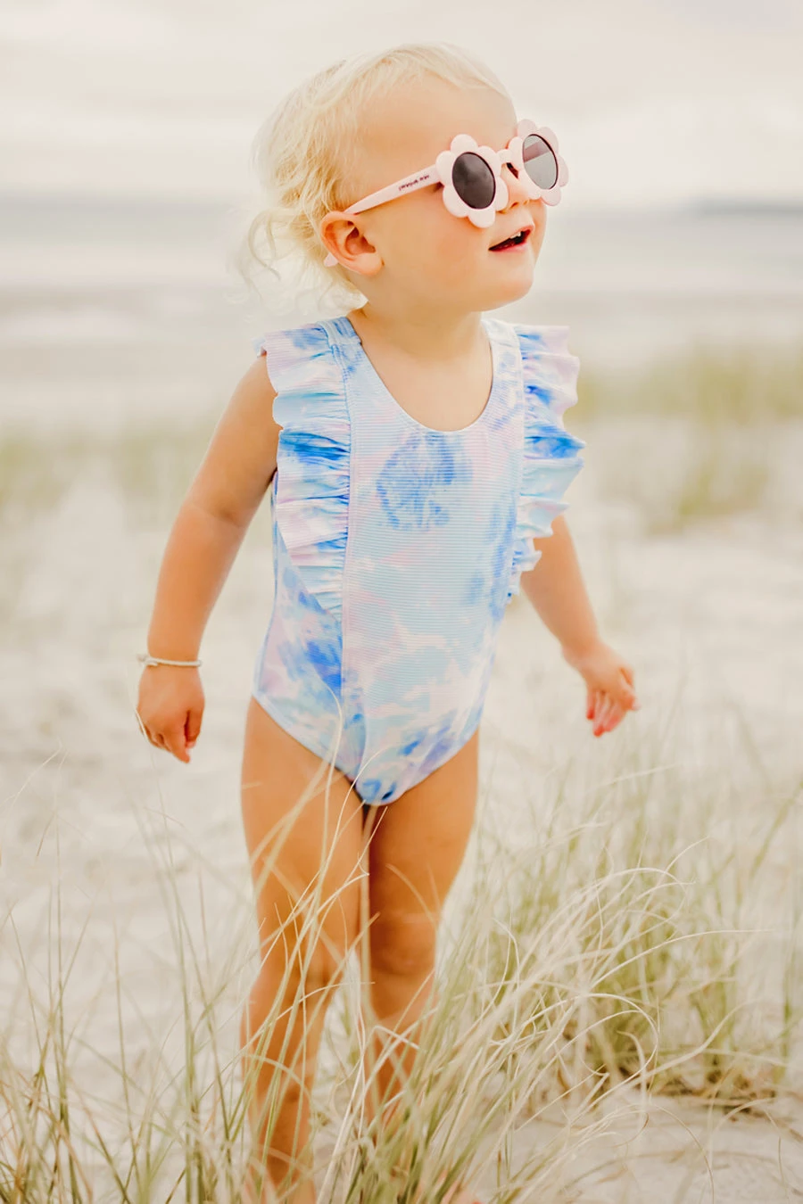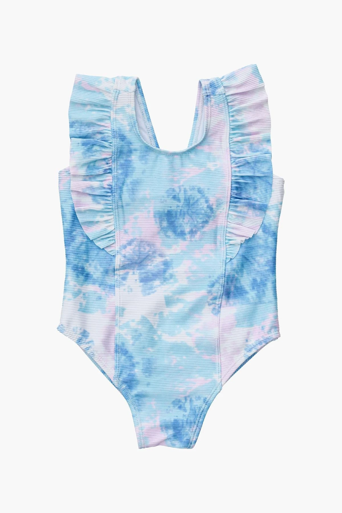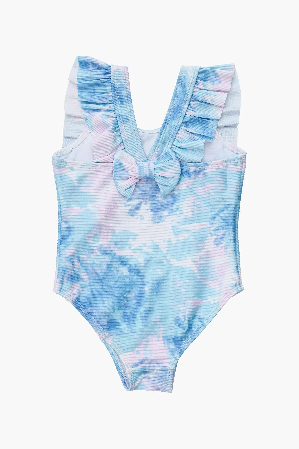 ruffle shoulder and a bow on the center back. This swimsuit is made with UPF 50+ Sun Protection, hand wash or machine wash cold.