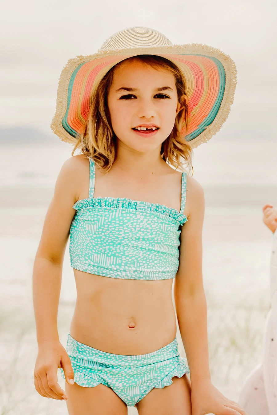 ruffle detail and frilled leg trim. This great girls swimsuit has adjustable straps and is made of UPF 50+ Sun Protection, hand wash or machine wash cold.