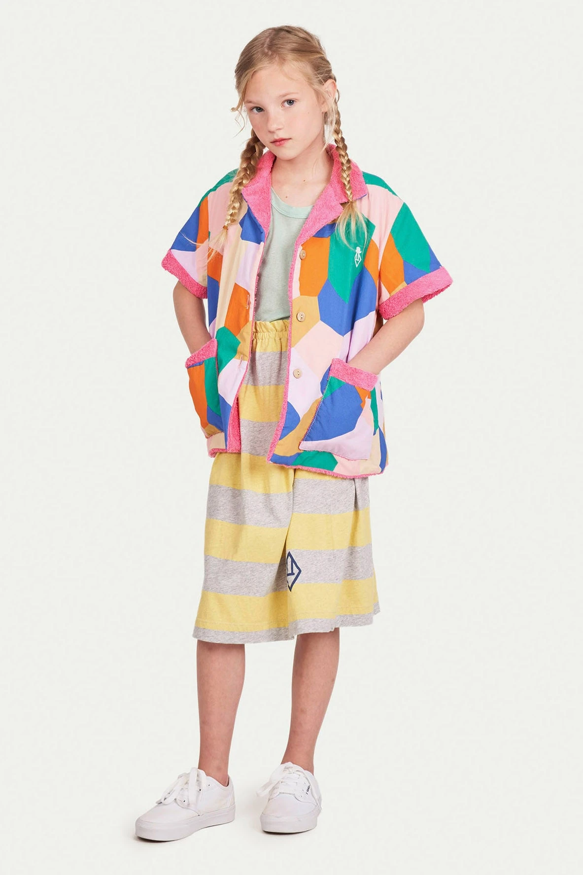 Skirt is a midi length skirt in bright stripes and an elastic waistband for a comfortable