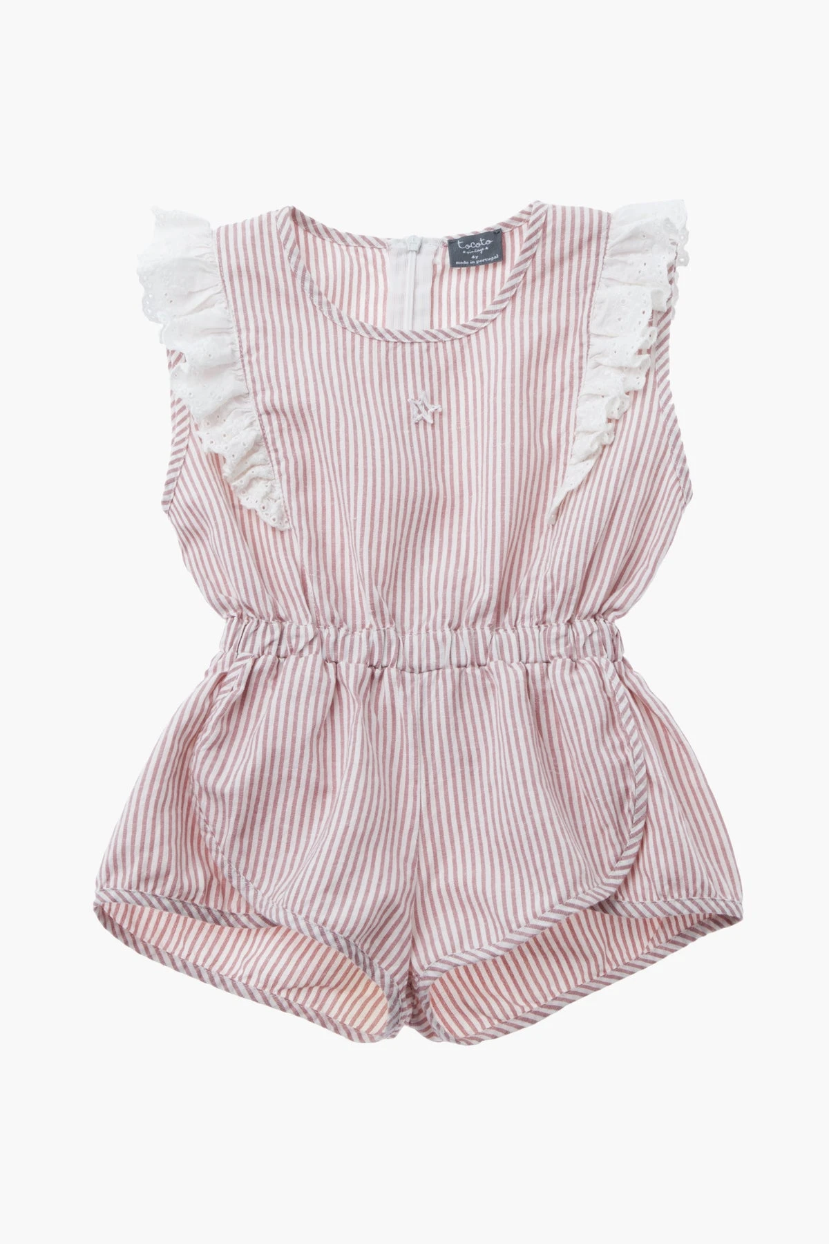 with ruffled sleeves and an elastic waistband for comfort. 50% cotton, 50% linen, machine wash cold. Please size up.