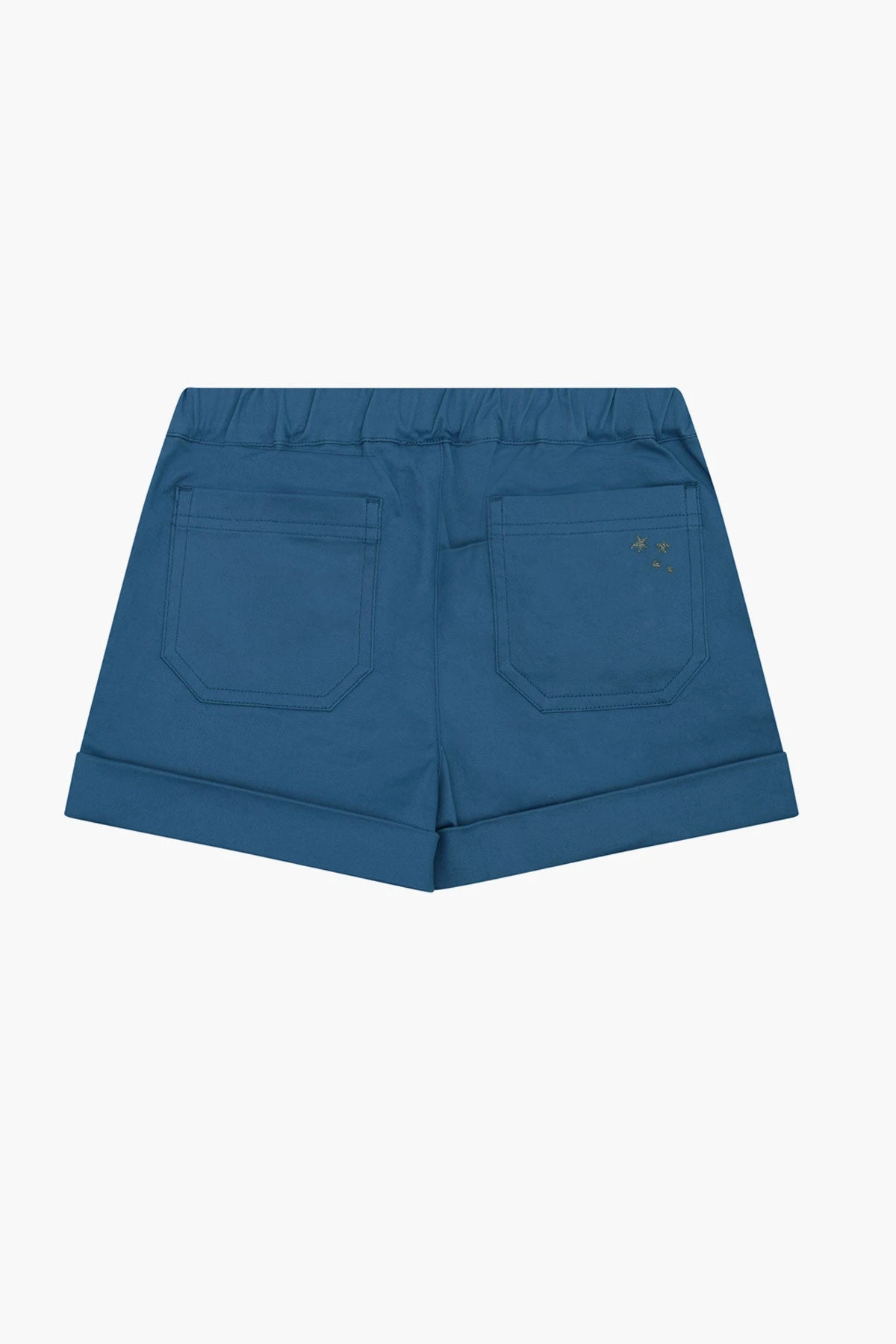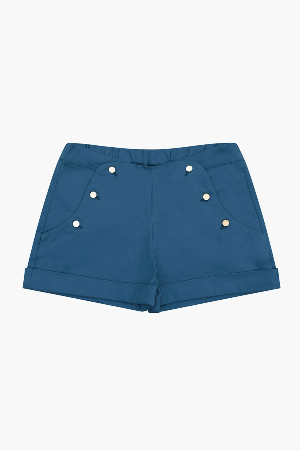 is a stylish summer girls short featuring gold buttons along the pockets and cuffed hems. Made in 97% cotton, 3% elastane, machine wash cold.