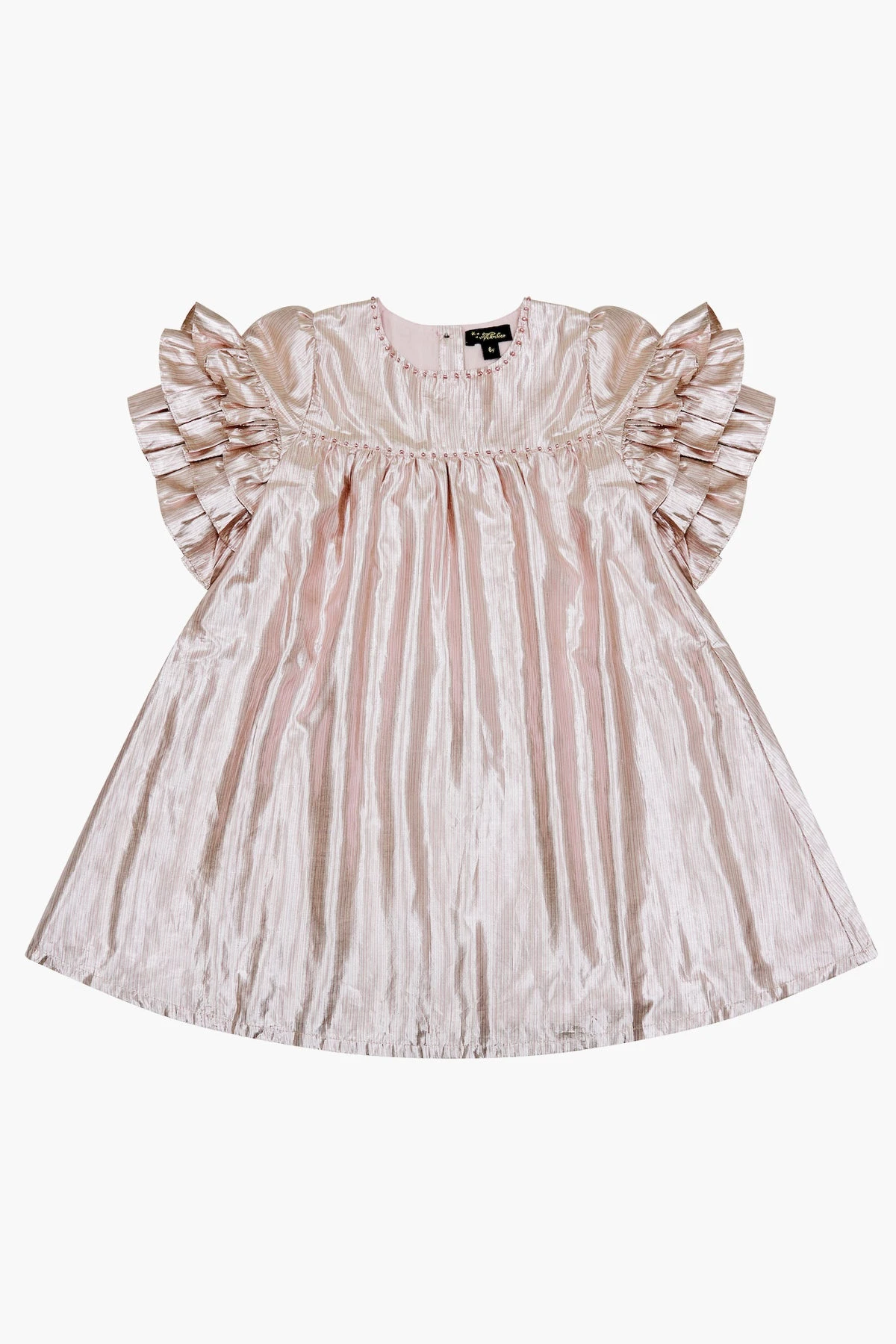in gold with plenty of frills at the sleeves and hand beaded detailing. Made of 66% metallic, 34% cotton lurex, fully cotton lined, hand wash only.