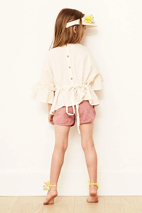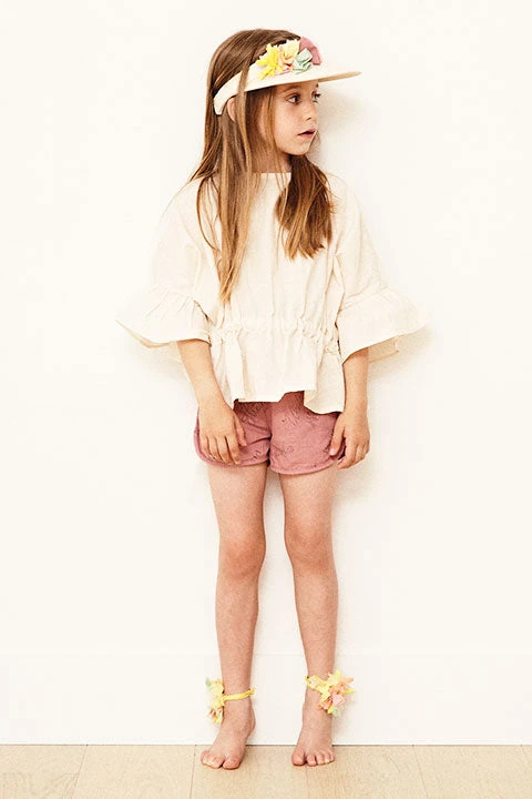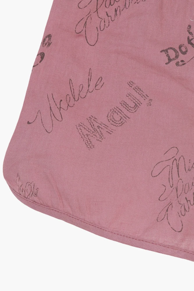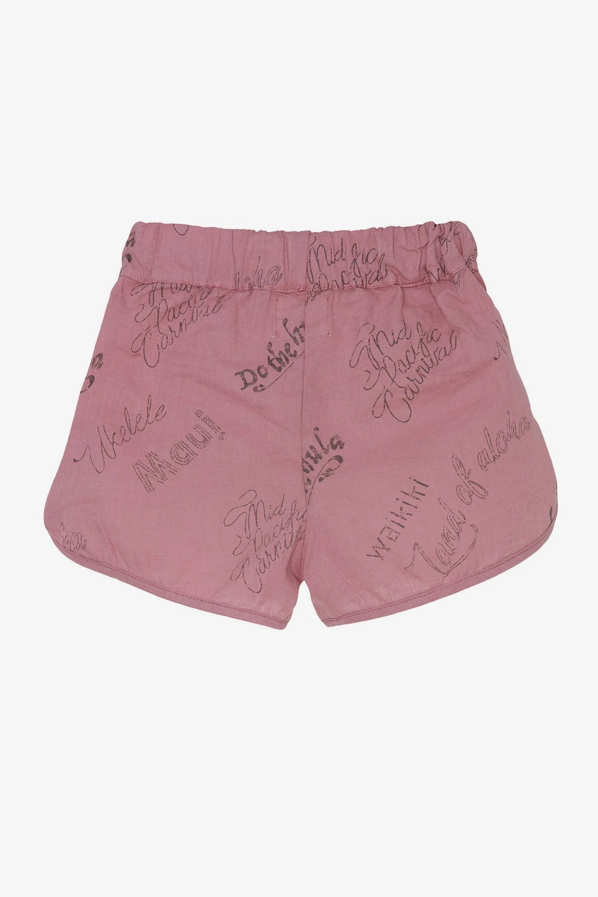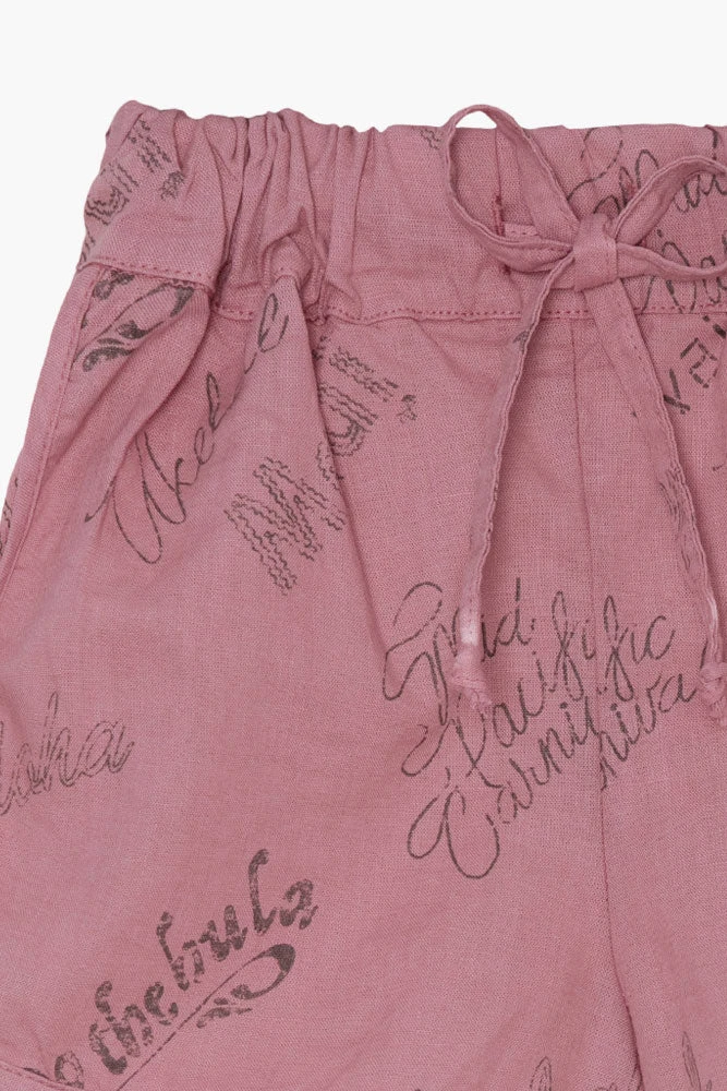 are perfect for the beach or play with an adjustable draw string waist. Features piping on the hem and various “Hawaii” themed phrases printed on the plum background. Made in 45% cotton, 55% linen.